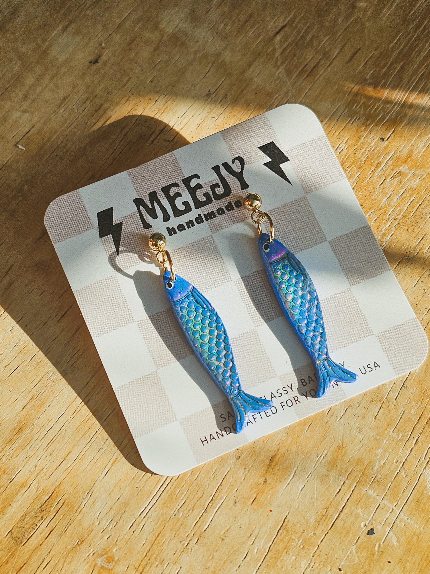 A Meejy Handmade staple.  Polymer clay earrings with a three dimentional pyramid...
